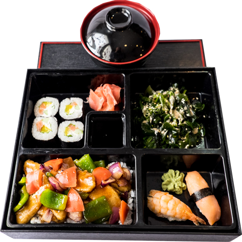 лайт 1/2, чукка салат, тори тяхан, нигири сякэ, нигири эби, суп кимчи