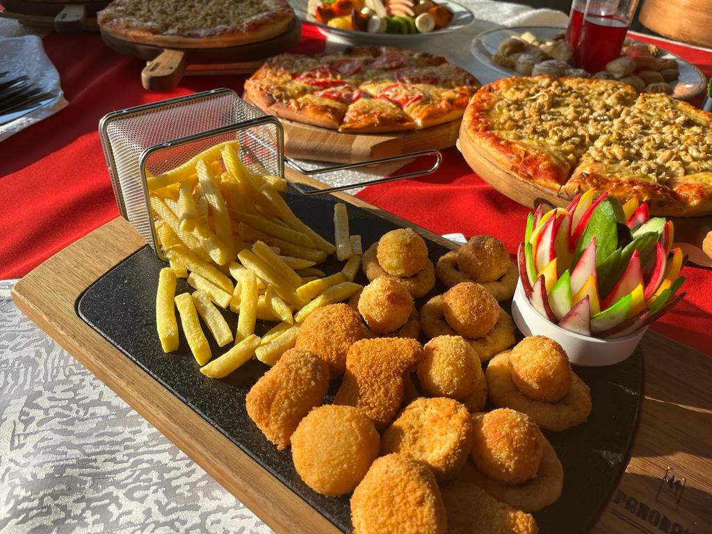 куриные наггетсы, крокеты, фри, луковые кольца
