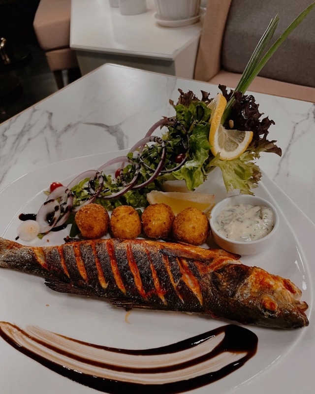 рыба на мангале, оливковое масло, лимон, черный перец ,соль ,сливочное масло