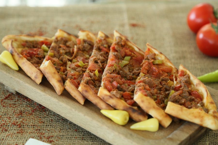 дрожжевое тесто, говяжий фарш, помидор, лук, чеснок, черный перец, красный перец, яйцо, моцарелла